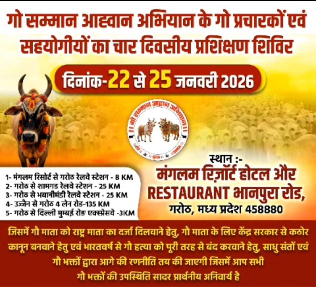 प्रशिक्षण शिविर में साधु-संतों एवं गौ भक्तों के मार्गदर्शन में गौ संरक्षण आंदोलन को और अधिक प्रभावी बनाने पर चर्चा होगी। आयोजकों ने देशभर के सभी गौ भक्तों,सेवकों एवं श्रद्धालुओं से इस अभियान में अधिक से अधिक संख्या में उपस्थित होकर गौ माता के सम्मान और संरक्षण हेतु एकजुट होने की अपील की है।