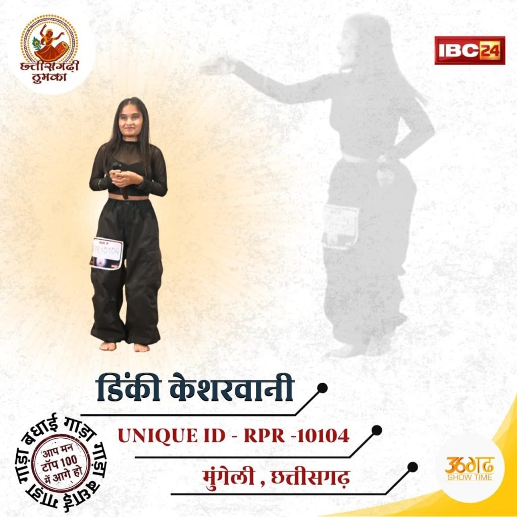 मुंगेली/जिले के लिए यह गर्व का विषय है कि नगर की होनहार और बेहद प्रतिभाशाली डांसर डिंकी केशरवानी ने प्रदेश के पहले छत्तीसगढ़ी डांस रियलिटी शो ‘छत्तीसगढ़ी ठुमका’ में टॉप 100 प्रतिभागियों में अपना स्थान सुनिश्चित किया है। यह रियलिटी शो IBC 24 चैनल द्वारा आयोजित किया जा रहा है,जिसका ऑडिशन प्रदेश की राजधानी रायपुर में 4 जनवरी को पंडित दीनदयाल उपाध्याय ऑडिटोरियम में संपन्न हुआ था।