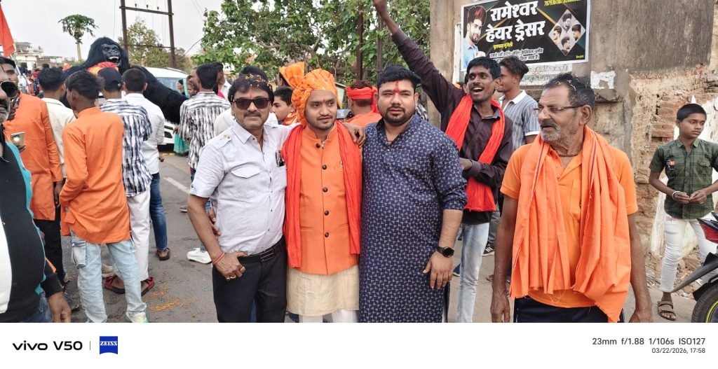 मुंगेली/चैत्र नवरात्रि एवं हिंदू नववर्ष के पावन अवसर पर नगर में निकाली गई भव्य शोभायात्रा के दौरान पूरे शहर में जबरदस्त उत्साह और उल्लास का माहौल देखने को मिला। ढोल-ताशों और डीजे की धुन पर हर वर्ग के लोग थिरकते नजर आए, जिससे पूरा वातावरण भक्ति और उमंग से सराबोर हो गया।