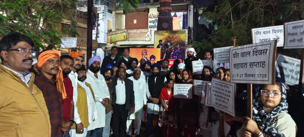 मुंगेली //वीर बाल दिवस के अवसर पर मुंगेली विधायक पुन्नूलाल मोहले ने मुंगेली गुरुद्वारा में जाकर वीर साहबजादे जोरावर सिंह और साहेबजादे फतेह सिंह के फोटो पर पुष्प अर्पित कर श्रद्धा सुमन अर्पित किया.इस अवसर पर उन्होंने कहा कि गुरु गोविंद सिंह जी के साहेबजादे ने इतने कम आयु में देश के लिए शहादत दिया है और देश, धर्म और सत्य के लिए अपने जीवन को वार दिया है. हम गुरुगोविन्द सिंह जी के परिवार के इस बलिदान के लिए उनको शत शत नमन करते हैं. जिला अध्यक्ष दीनानाथ केशरवानी ने कहा वीर साहबजादे को हम नमन करते हैं गोविंद सिंह जी और उनके परिवार का बलिदान हमेशा हम सबको प्रेरित करता रहेगा. श्रद्धांजलि सभा के बाद मुंगेली गुरुद्वारा से स्वर्ण जयंती स्तम्भ तक मौन जुलूस निकाला गया तथा मोमबत्ती जलाकर व पुष्प अर्पित कर श्रद्धांजलि दिया इस अवसर पर वरिष्ठ भाजपा नेता गिरीश शुक्ला,पूर्व जिला अध्यक्ष शैलेष पाठक,ताकेश्वर साहू,अमरजीत सिंह,द्वारिका जायसवाल,सिक्ख समाज से स्वर्ण सिंह छबड़ा,गुरजीत सिंह मक्कड़,पवनजीत सिंह छाबड़ा,अमरजीत सिंह,प्रभुजीत सिंह,लवी सलूजा,मयंक वाधवा तथा मातृशक्ति एवं भारतीय जनता पार्टी से इस कार्यक्रम के जिला सहसंयोजक राजकुमार वाधवा,राजीव श्रीवास,सौरभ बाजपेयी,महावीर सिंह,मन्नू श्रीवास्तव,विजय यादव,अमितेश आर्य,श्वेता सोनी,प्रवीण सोनी,रवि साहू,वैभव ताम्रकार,प्रदीप सिंह,जीवन पटेल,संतोष लखवानी,गणेश बाजपेयी,आसिफ खोखर,मोहन मल्लाह,सत्तू सिंह,धनराज सिंह,वासुदेव देवांगन,रामजी यादव,शैलेंद्र यादव आदि पदाधिकारी व कार्यकर्ता उपस्थित रहे यह जानकारी जिला मीडिया प्रभारी रामशरण यादव द्वारा दिया गया.
