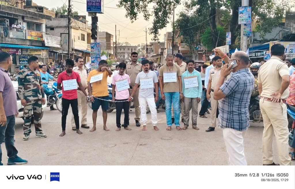 मुंगेली/पुलिस अधीक्षक भोजराम पटेल (भा.पु.से.) द्वारा अभियान *‘‘ऑपरेशन बाज’’* के तहत सुखा नशा जैसे ब्राउन शुगर, चरस, अफीम के तस्करी तथा ब्रिकी कर युवा पीढ़ी को नशे की ओर धकलने तथा युवाओं की भविष्य खराब करने व नशा की लत लगाने वाले ऐसे व्यक्तियों की सूची तैयार कर कार्यवाही करने निर्देशित किया गया व अतिरिक्त पुलिस अधीक्षक नवनीत कौर छाबड़ा व अनुविभागीय अधिकारी मयंक तिवारी,उप पुलिस अधीक्षक एस.आर.घृतलहरे,उप पुलिस अधीक्षक नवनीत पाटिल के पर्यवेक्षण में पुलिस टीम गठित कर अवैध रूप से मादक पदार्थ ब्राउन शुगर, गांजा तस्करी व ब्रिकी तथा सेवन करने वालों के विरूद्ध कार्यवाही की गई। दिनांक 18.8.2025 को मुंगेली पुलिस अधीक्षक श्री पटेल के निर्देशन मे थाना सिटी कोतवाली, थाना जरहागांव एवं सायबर सेल के द्वारा संयुक्त रूप से टीम गठित कर जिले मे अवैध रूप से मादक पदार्थ ब्राउन शुगर, गांजा एवं अन्य नशे का तस्करी कर युवा पीढ़ी को नशे का लत लगाने वाले ऐसे तस्करों तथा ब्रिकी करने वाले लोगो की सूची तैयार कर थाना मुंगेली क्षेत्रान्तर्गत 1. जाकिर खान पिता जब्बार खान निवासी दाउपारा चौक मुंगेली 2. सोनू डांडे उर्फ छोटे सोनू पिता स्व. किशोर मेहर डाण्डे उम्र 32 वर्ष निवासी वार्ड 17 केशवपुर मुंगेली 3. अनिल कुमार खरसायन उर्फ बड़े सोनू पिता जनक राम मेहर उम्र 38 वर्ष निवासी वार्ड 17 केशवपुर मुंगेली 4. विष्णु वैष्णव उर्फ शिव बाबा पिता बृजभूषण वैष्णव उम्र 58 वर्ष निवासी खर्रीपारा मुंगेली व थाना जरहागांव क्षेत्रान्तर्गत 6. किशोर ध्रुव पिता स्व.राजेन्द्र प्रसाद उम्र 35 वर्ष निवासी झझपुरी खुर्द जरहागांव 7. अमित साहू पिता बाबुराम उम्र 38 वर्ष निवासी झझपुरी खुर्द जरहागांव को हिरासत मे लेकर पुछताछ किया गया जो पृथक-पृथक नशा ब्राउन शुगर, नाइट्रा, गांजा, सिगरेट, बीड़ी, शराब का सेवन तथा बाहर राज्यों से ब्राउन शुगर को लाकर युवाओं को बेचते है तथा नशा कराते है जिस पर उक्त जाकिर खान, सोनू डांडे, अनिल खरसायन, विष्णु वैण्णव, किशोर धु्रव, अमित साहू की गिरफ्तारी कर शहर मे रैली जुलुस निकालकर तस्करों तथा ब्रिकी करने वालों को ‘‘हम है नशा के सौदागर, हमसे बचिये और अपने बच्चों को भी बचाईये’’ का नारा लगवाते हुये पुरे शहर मे पैदल घुमाया गया और युवा पीढ़ियो को जागरूक किया गया और प्रतिबंधात्मक कार्यवाही के तहत जेल दाखिल किया गया।