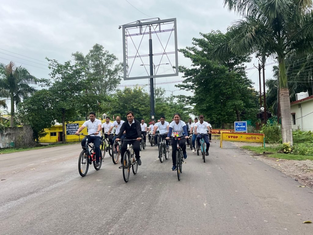 मुंगेली पुलिस ने साइकिलिंग करते हुये लगाये नारे “फिटनेस का डोज, आधा घण्टा रोज”