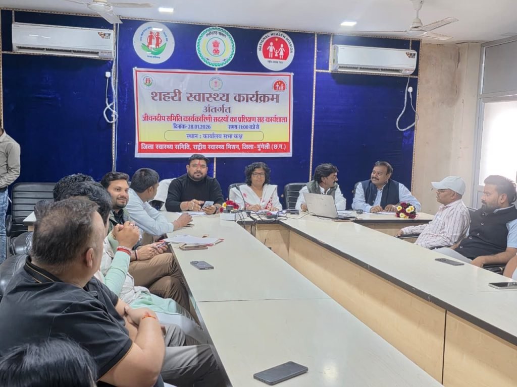 मुंगेली/जिले में राष्ट्रीय शहरी स्वास्थ्य कार्यक्रम (एनयूएचएम) के अंतर्गत मुख्य चिकित्सा एवं स्वास्थ्य अधिकारी कार्यालय में शहरी स्थानीय निकाय की महत्वपूर्ण बैठक आयोजित की गई। बैठक का मुख्य उद्देश्य शहरी क्षेत्रों,विशेषकर झुग्गी-बस्तियों में निवासरत गरीब,जरूरतमंद एवं कमजोर वर्ग के नागरिकों को सुलभ,सस्ती और गुणवत्तापूर्ण स्वास्थ्य सेवाएं उपलब्ध कराना रहा।